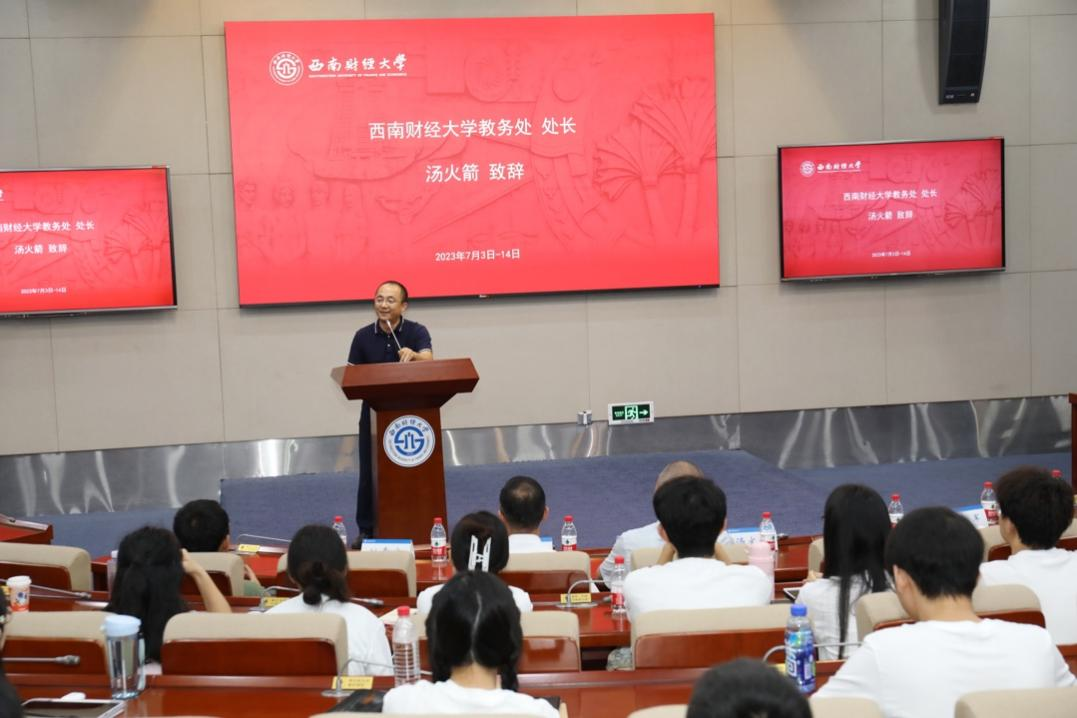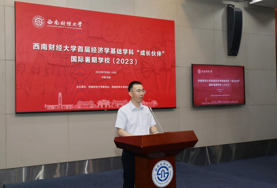 永利3044集团官网经济学院于2023年7月3日举行备受期待的“成长伙伴”国际暑期学校开幕式,标志着一场为期两周的学术盛会正式启动。“成长伙伴”国际暑期学校由教务处和经济学院共同举办。本次活动的目标是培养经济学领域的拔尖创新人才,为优秀学子提供与国内外顶尖学者和同龄学子深入交流的平台。开幕式在弘远楼101举行,教务处处长汤火箭、经济学院党委书记兰敏、经济学院副院长韩文龙、经济系主任李标、数字经济学主任吴应军、经济学拔尖学生培养基地主任姚常成、经济学院姚凯、李桦林、方小书、黄沙沙、王韵雯等老师,以及35位入营学员参加了这场盛会。