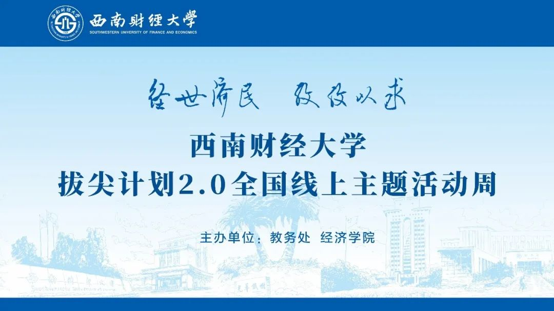8月26日至8月31日,永利3044集团官网经济学拔尖学生培养基地筹划了以“经世济民 孜孜以求”为主题的拔尖计划2.0全国线上主题活动周。本次主题活动周由教务处和经济学院主办,依托国家经济学拔尖学生培养基地,精心组织了朋辈分享、读书分享会以及名师讲座等各具特色的主题活动,展示了西财师生关注经济、关切民生的家国情怀和“学以报国”的崇高追求。本次线上主题活动周通过线上书院平台进行直播,4场活动最高观看数量达到了1387人次,平均观看数量达670人次,得到了全国拔尖基地师生的广泛关注和认可。