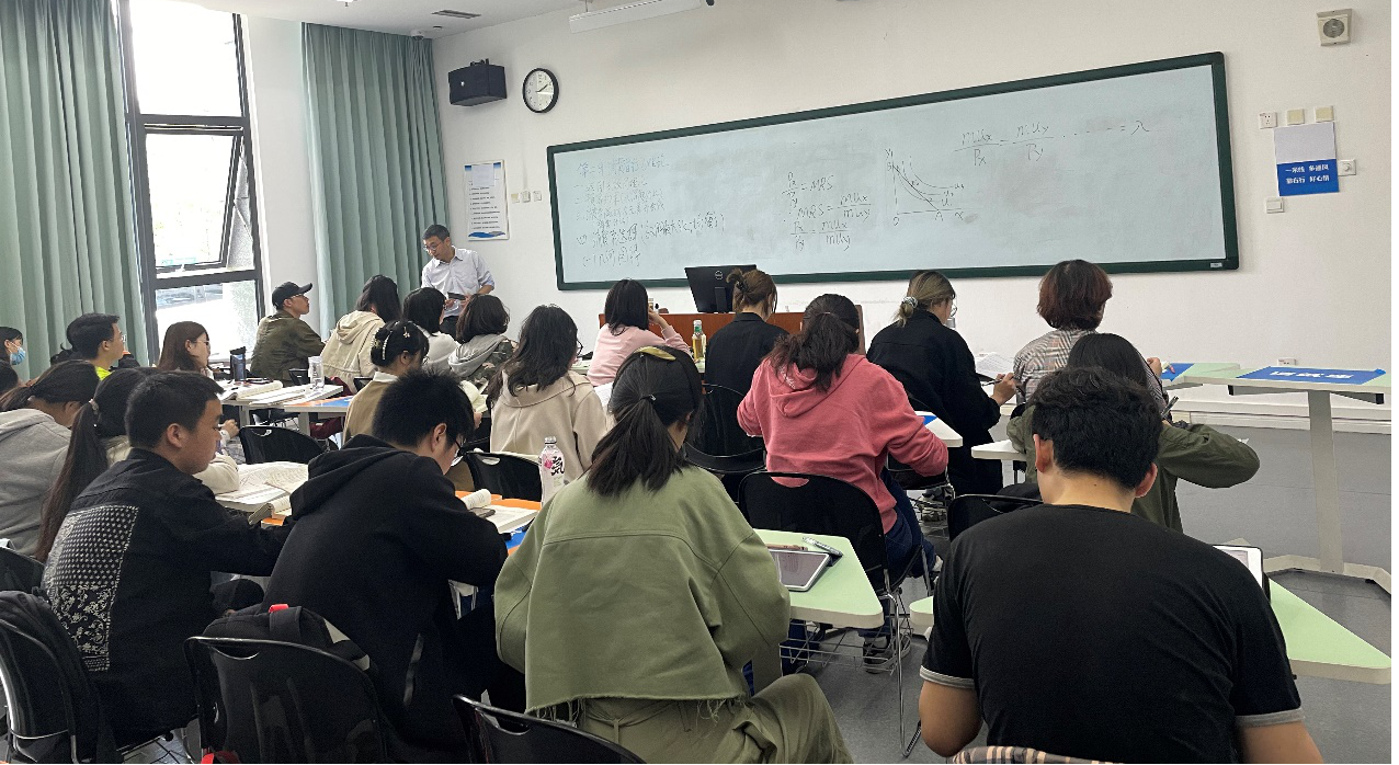 刘恒老师、杨海涛老师分别讲授了《微观经济学》、《宏观经济学》课程,充分发挥了优秀教师良好的示范和引领作用。青年教师田世野讲授了《政治经济学》,希望通过其他青年教师的评价,结合教学反思,进一步提升自身的教学能力。