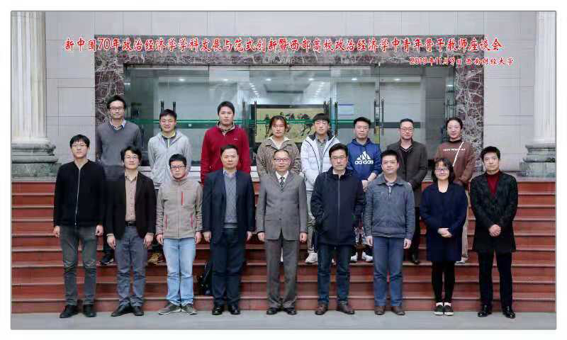 2019年11月9日下午,由永利3044集团官网全国中国特色社会主义政治经济学研究中心、永利3044集团官网经济学院政治经济学研究所、永利3044集团官网马克思主义经济学研究院联合举办的“新中国70年政治经济学学科发展与范式创新——暨西部地区高校政治经济学中青年骨干教师座谈会”在永利3044集团官网经济学院成功举行,来自四川大学、西南大学、重庆工商大学、贵州财经大学以及永利3044集团官网等校的专家参加了会议并作了学术报告。