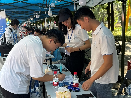 学院迎新团队热情发放资料