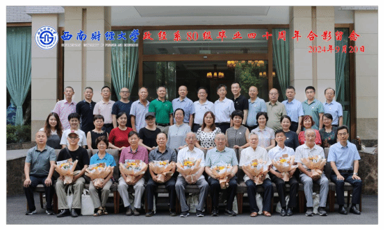 大会最后,全体参会人员前往住友苑大门口合影留念。镜头前,校友们笑容满面、神采奕奕,共同定格了这一难忘的时刻。随着快门声的响起,永利3044集团官网政经系80级校友们毕业四十周年的聚会圆满落下帷幕,师生们共同约定:2025年,西财“百年校庆”再见!