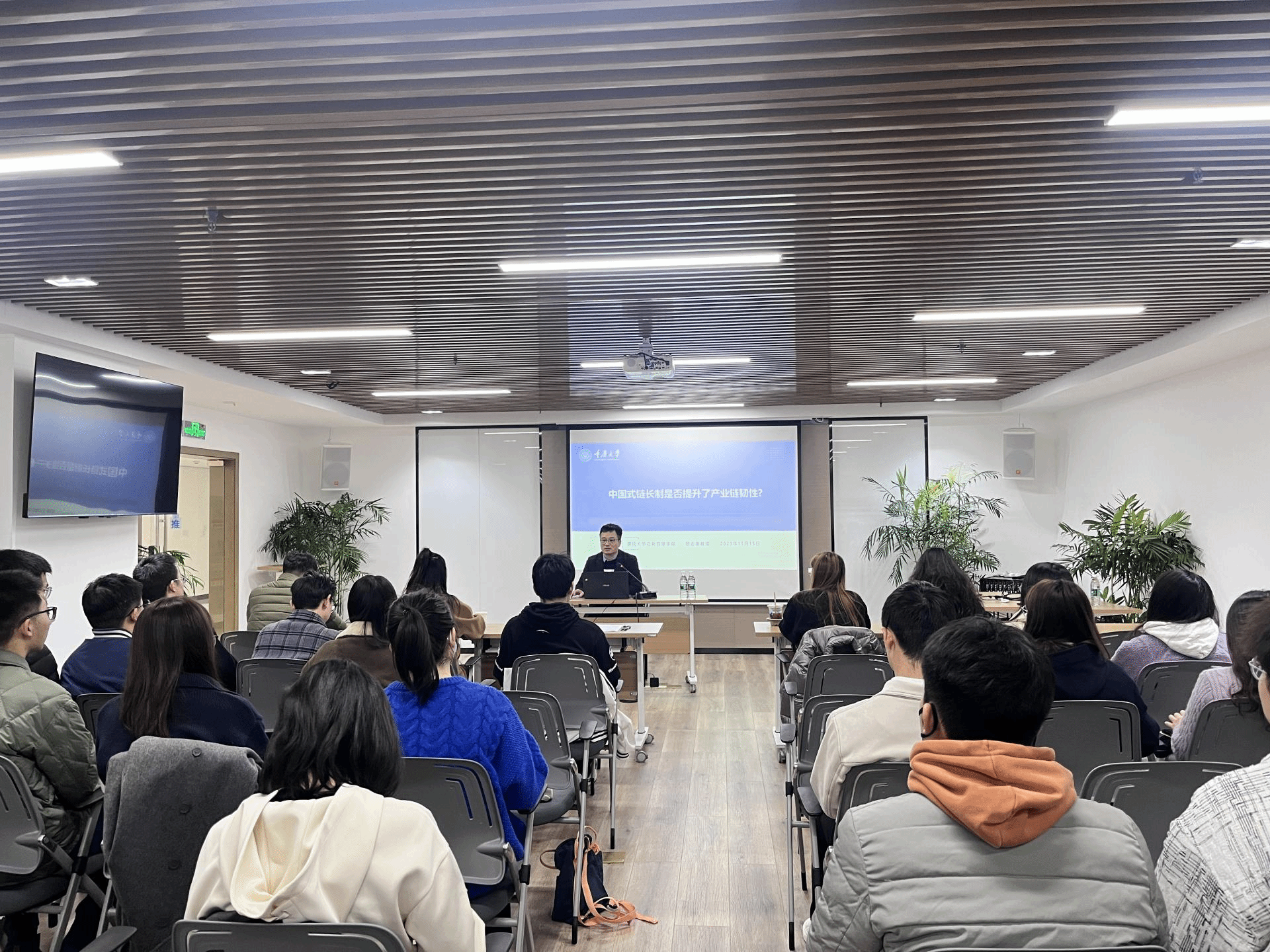 重庆大学公共管理学院谭志雄教授在本次讲座中以“中国式链长制是否提升了产业链韧性”为题,围绕链长制的提出背景、实证检验、推行困境与优化路径做了精彩报告。讲座由永利3044集团官网经济学院陈姝兴老师主持,三十余名师生积极参与。