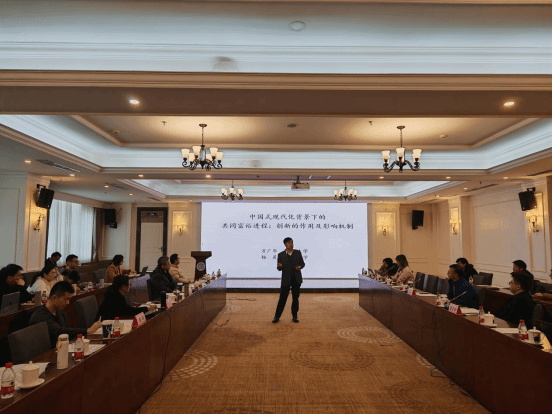 1月19日,百年校庆杰出学者讲座第19期在光华校区住友苑二楼会议室举办,本期讲座以“中国式现代化背景下的共同富裕进程:创新的作用及影响机制”为主题,由复旦大学经济学院万广华教授主讲,我院副院长邹红教授担任主持。40余名师生参与了本次讲座。